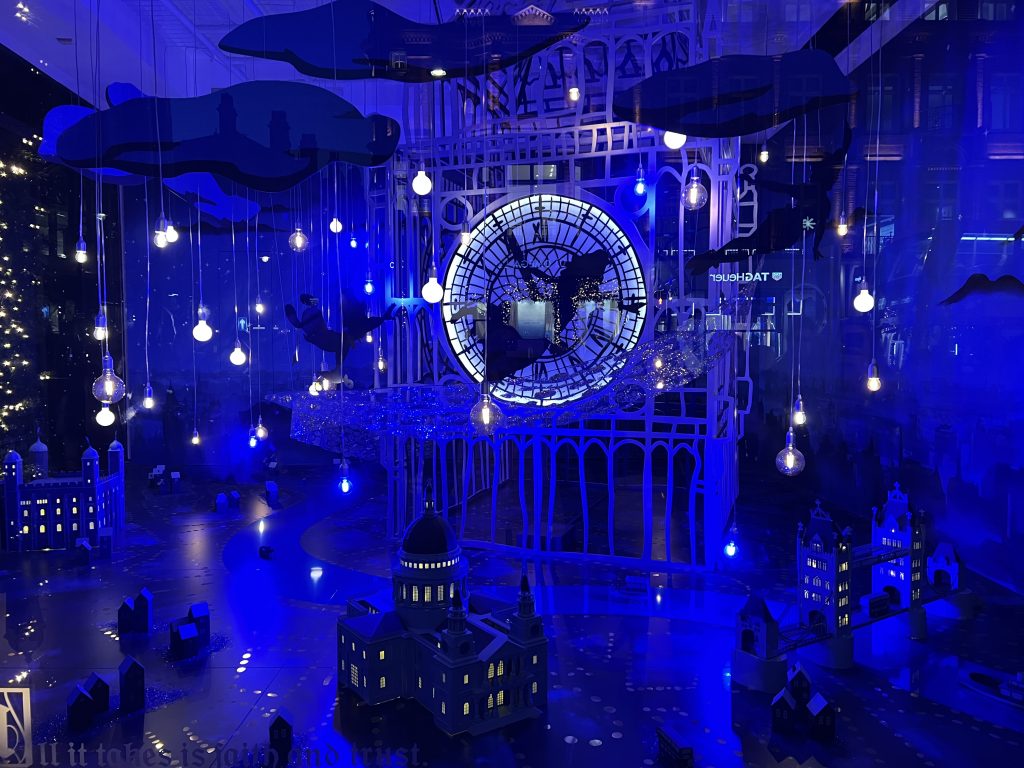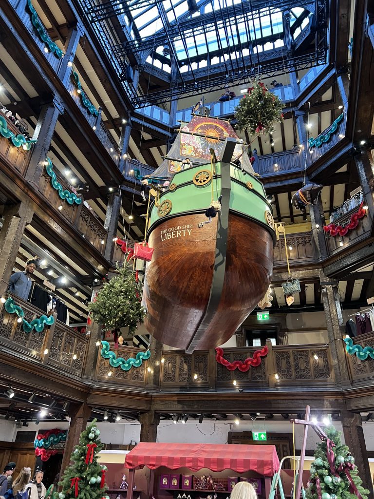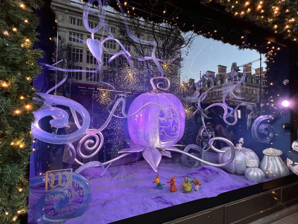 I had a great morning catching up with my friends and then tubed over to see my friend Liz. She and I had a lovely lunch and concluded by promising to stay in touch. I am always hinting (not subtly anymore) that I’d love to work with her. One of these days maybe she’ll take my hint. Since we had lunch near her office, we said our goodbyes and I explored Carnaby. I always want to buy something at Liberty, but can’t ever seem to be able to pry open my wallet. Today was no exception. I came close when I saw some beautiful scarves. Liberty is such a pretty store….one of these days, I will make a purchase. Liberty is at the ‘entrance’ to Carnaby Street – which is full of little shops and pretty lights for Christmas. As I meandered, I exchanged a few texts with the my friends and decided to meet them at Selfridge’s. Selfridge’s on the Friday before Christmas is not for the feint of heart – it is PACKED. The windows were pretty (Disney theme) but there were entirely too many people. Eventually we gave up and hopped on a bus that was also packed (standing in the aisles, no moving). Our destination was the main Fortnum and Mason store where we did more Christmas shopping. It was also packed.