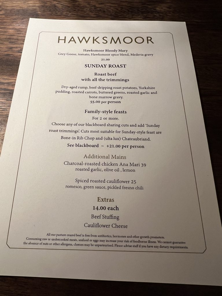If you haven’t experienced a proper Sunday Roast, I highly recommend it! We ate Sunday Roast at Hawskmoor in London. I was googling them to write up my London posts and discovered they had a NYC location. I promptly made reservations for noon. The hotel room coffee proved to be lame, so I am in need of a caffeine jolt. Mia’s bakery is located just outside the hotel, so I ran downstairs (bundled up, because it is another COLD day) and grabbed a latte and a scone to keep me pleasant to be around.