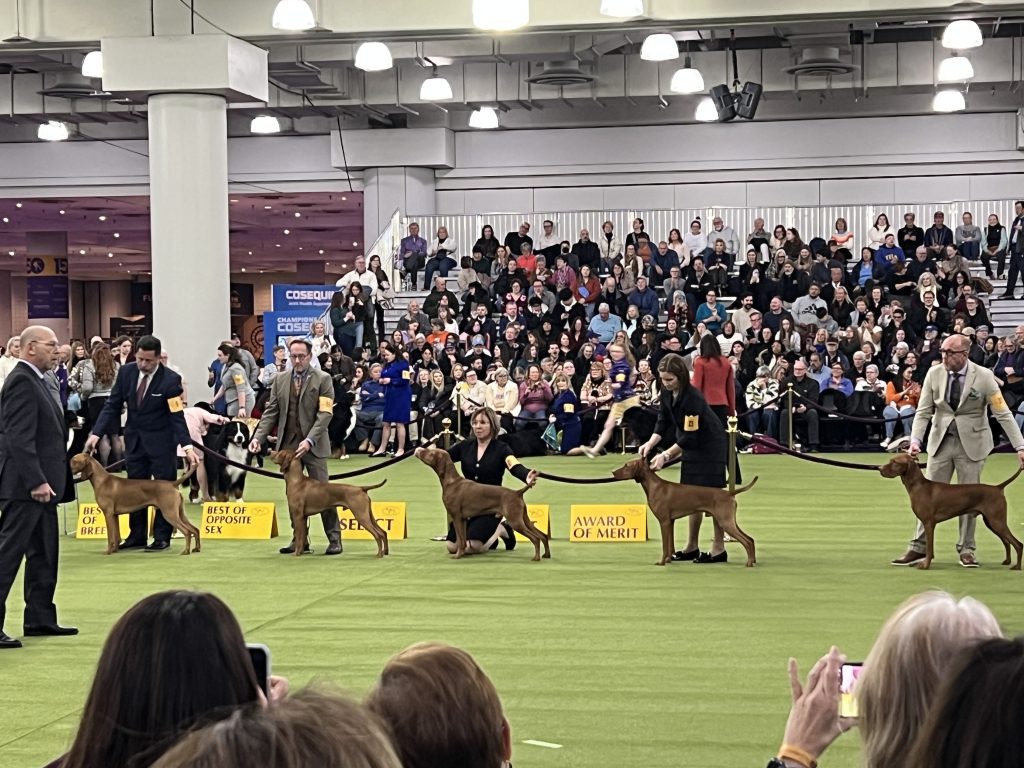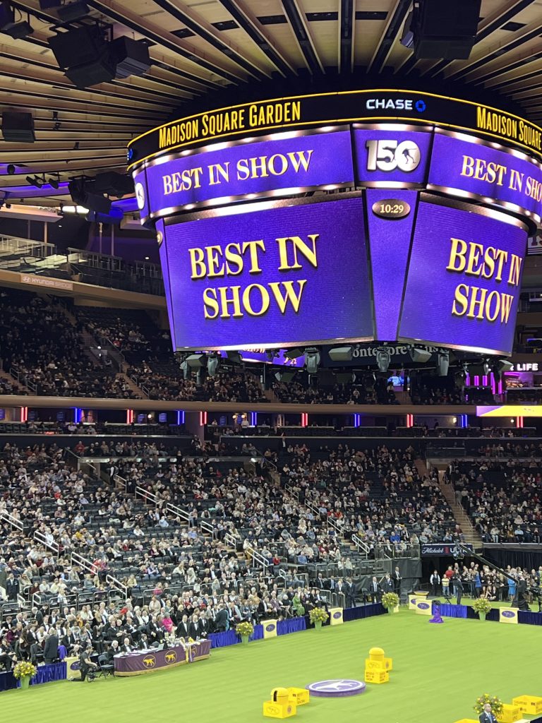 After the show we pulled ourselves together, eating once again at the Long Acre tavern and then it was time to head to Madison Square Garden. This is only about a 1/2 mile or so from our hotel, but one of our ladies is not that ambulatory, so we took an Uber. I’ve never attended a concert/show at Madison Square Gardens…so this was exciting for me in more ways than one. We found our seats and settled in for the remaining ‘semi-finals’ and then the main event – Best in Show. I was rooting for all the dogs but mostly for the Old English Sheepdog. I thought for sure the Aghan had it. But what do I know? Zero, apparently. Penny the Doberman won Best in Show, with Runner-up going to the Chesapeake Bay retriever.